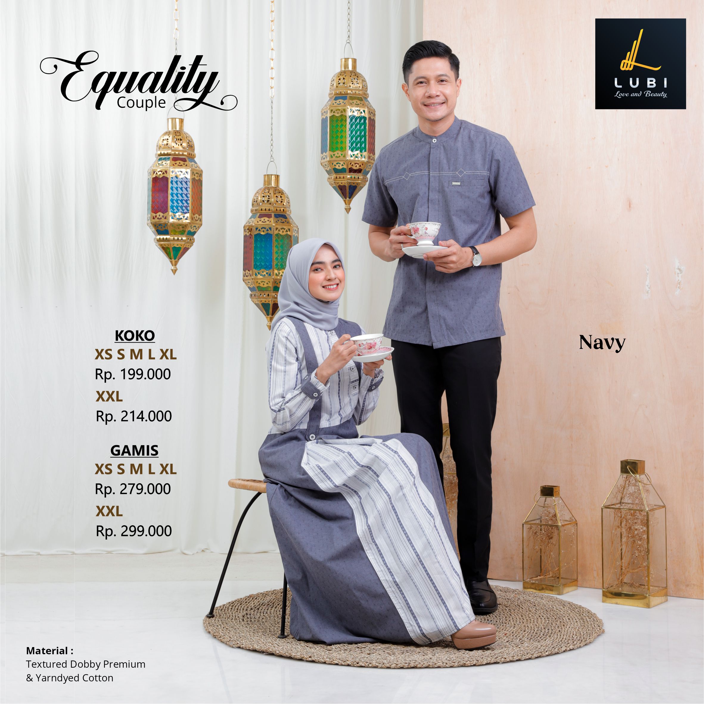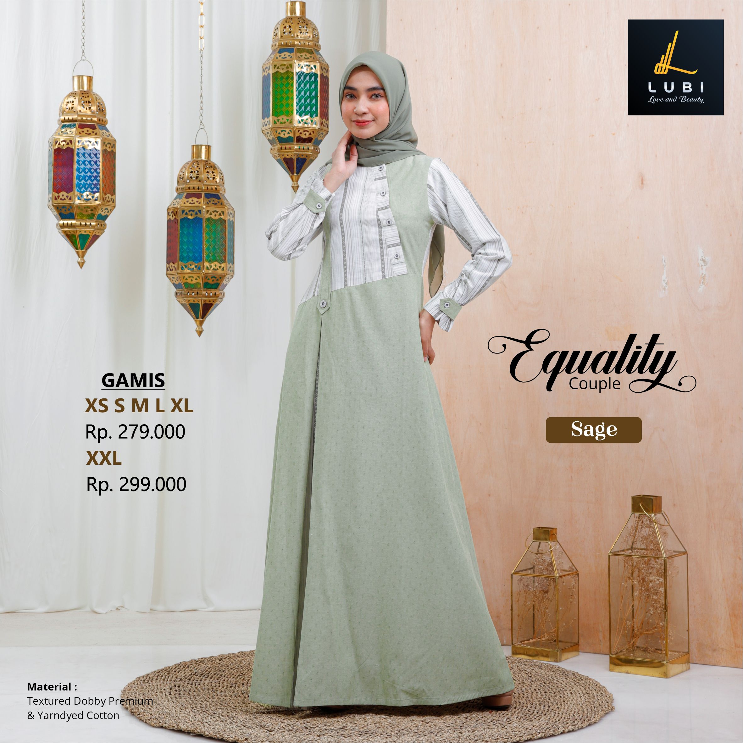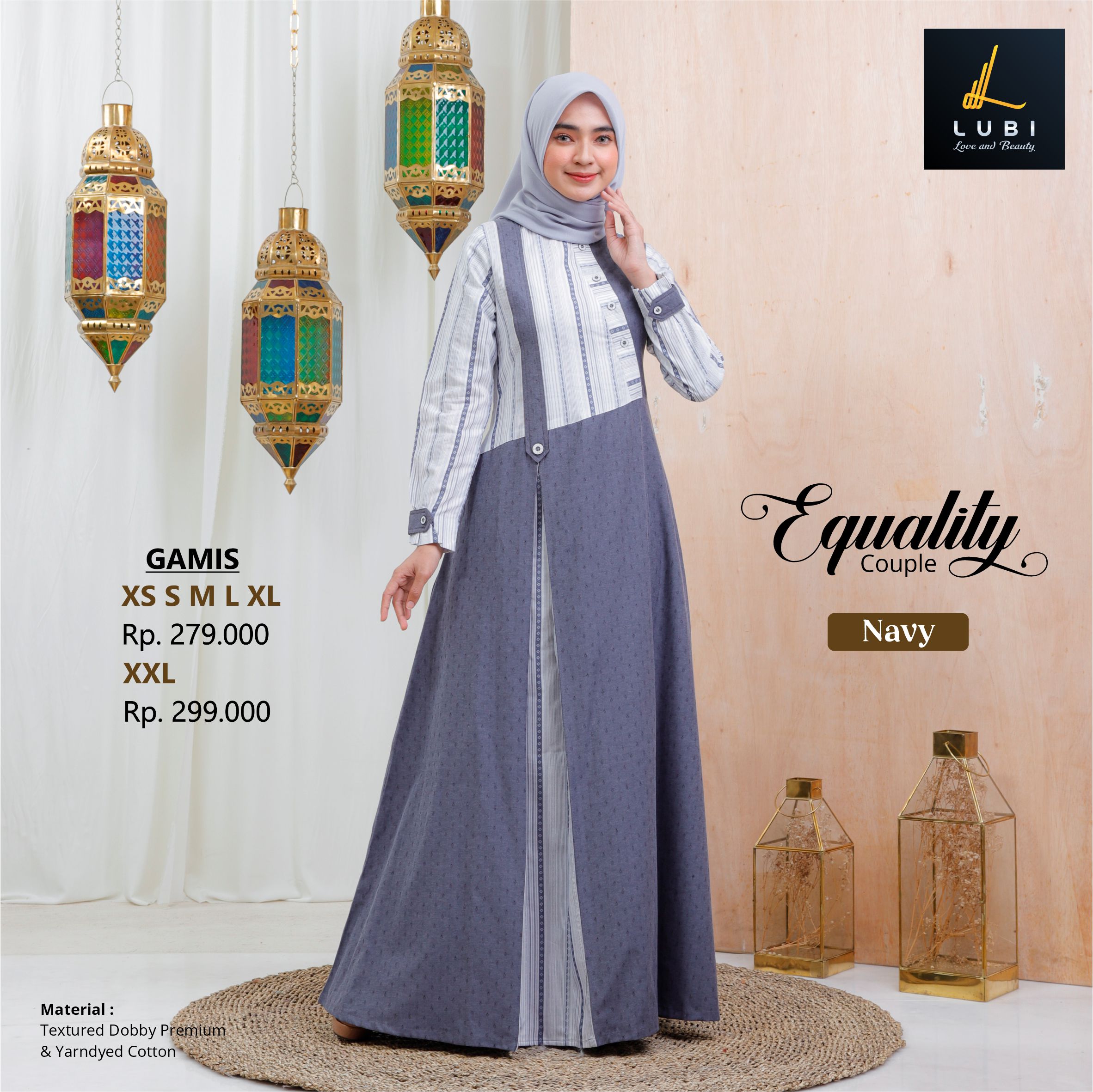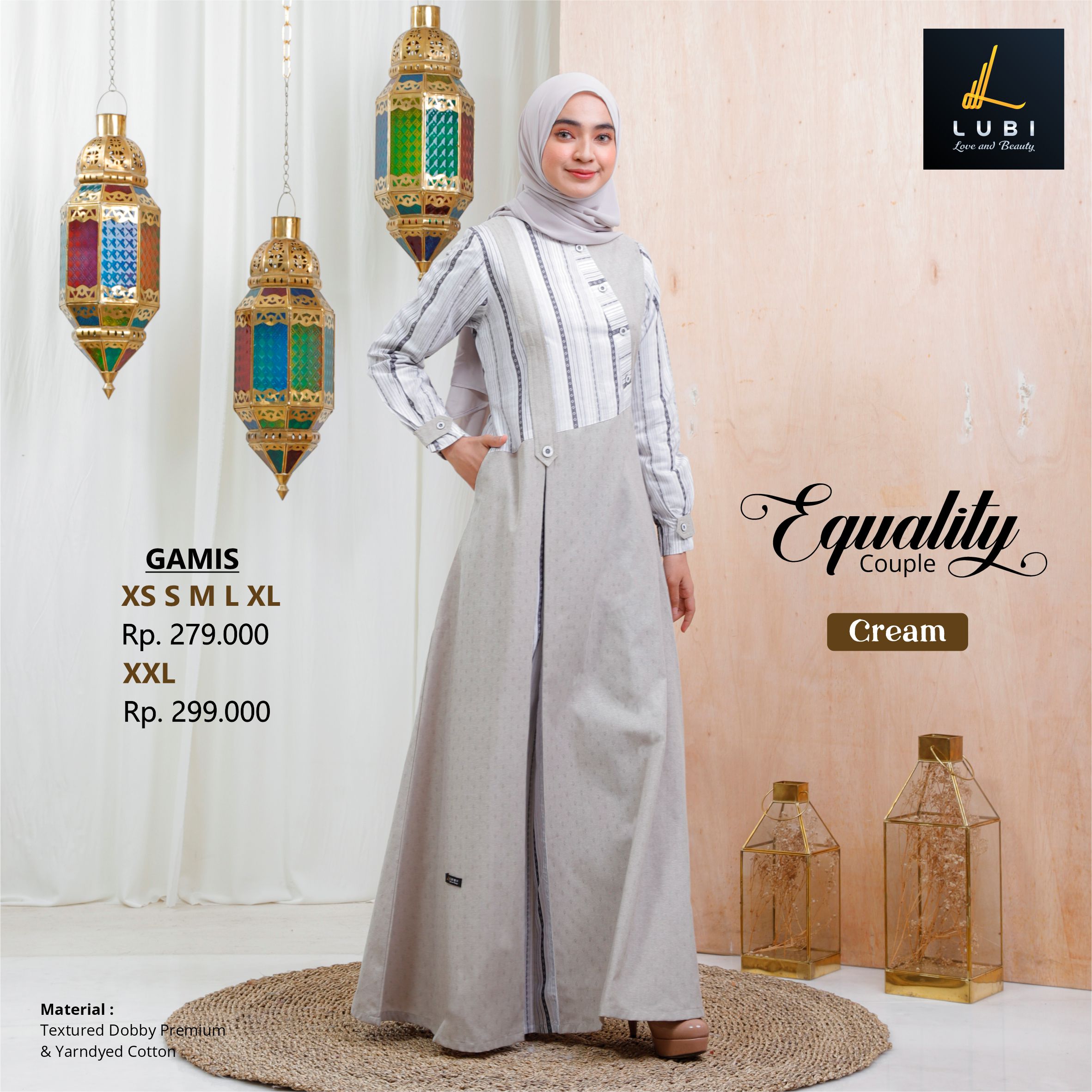 Gamis dipadukan dengan kain yarndyed cotton yaitu salah satu jenis kain bermotif salur, jatuh & tidak mudah kusut.