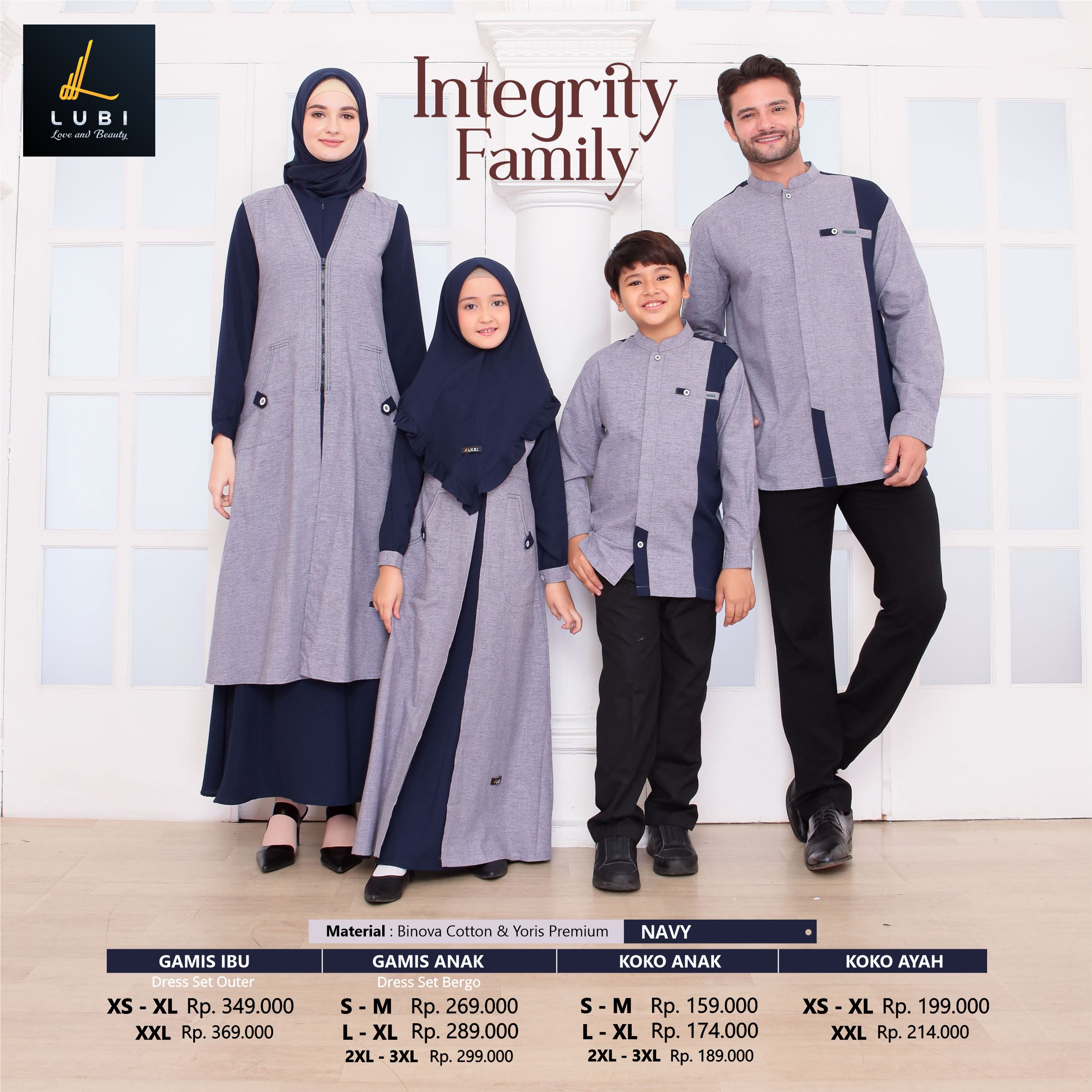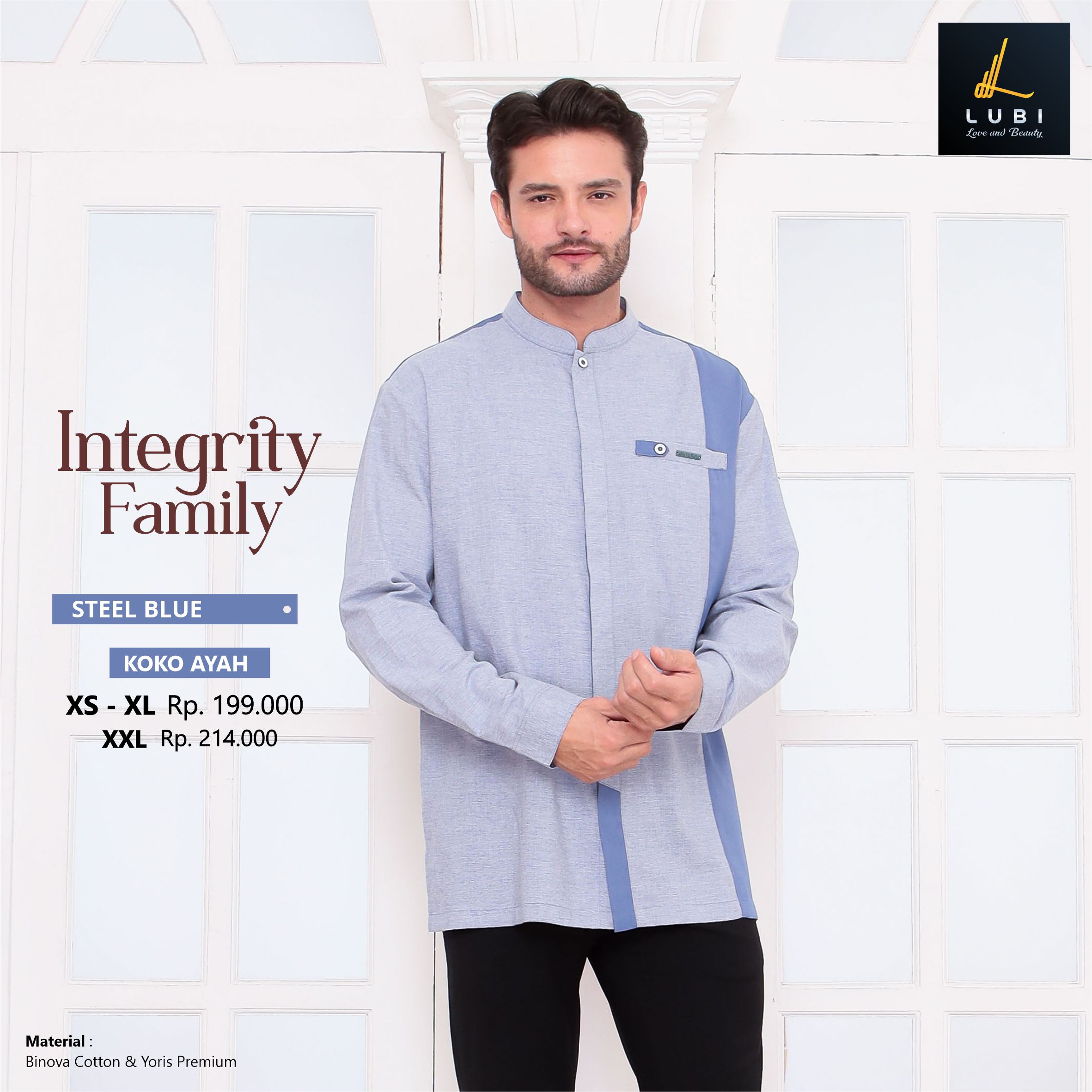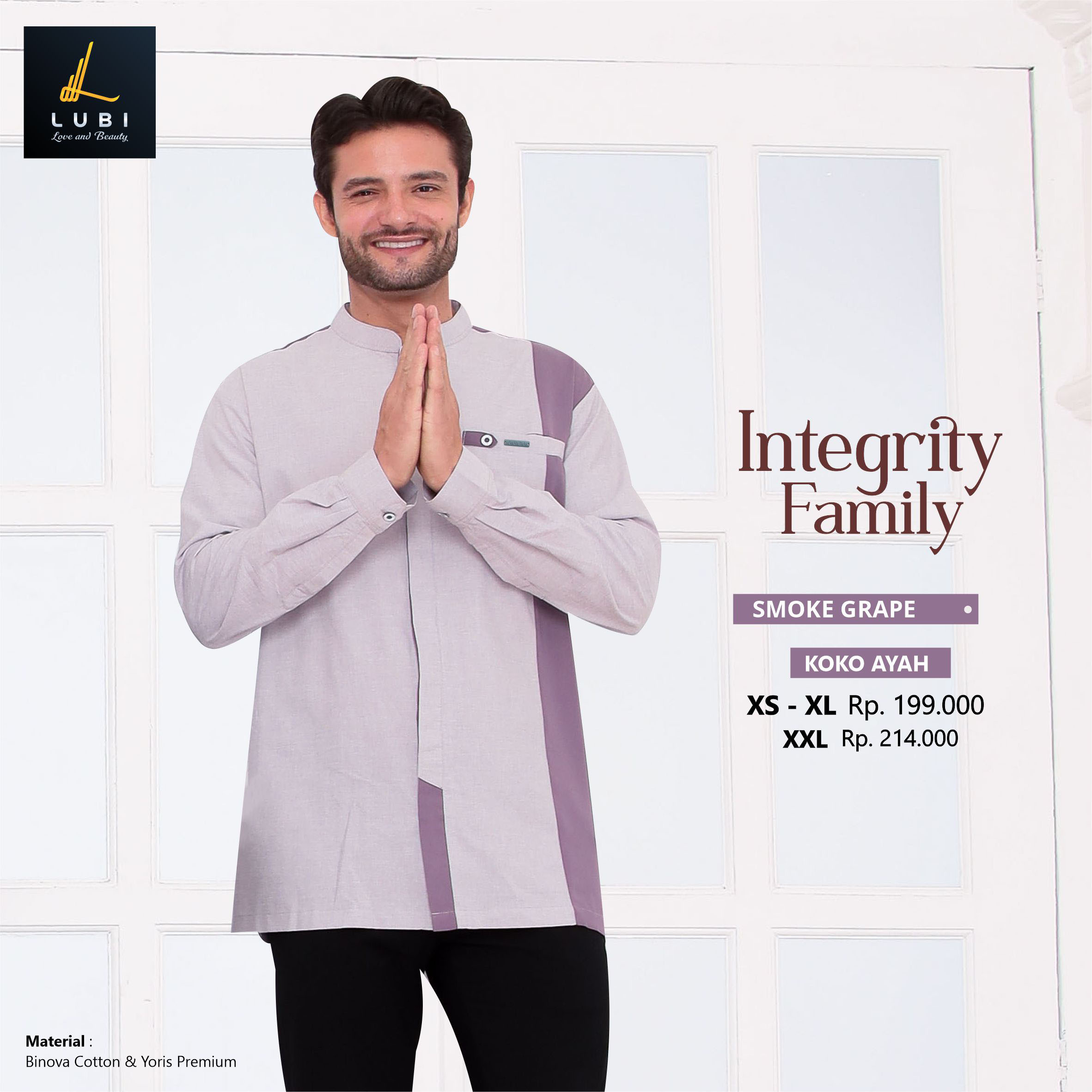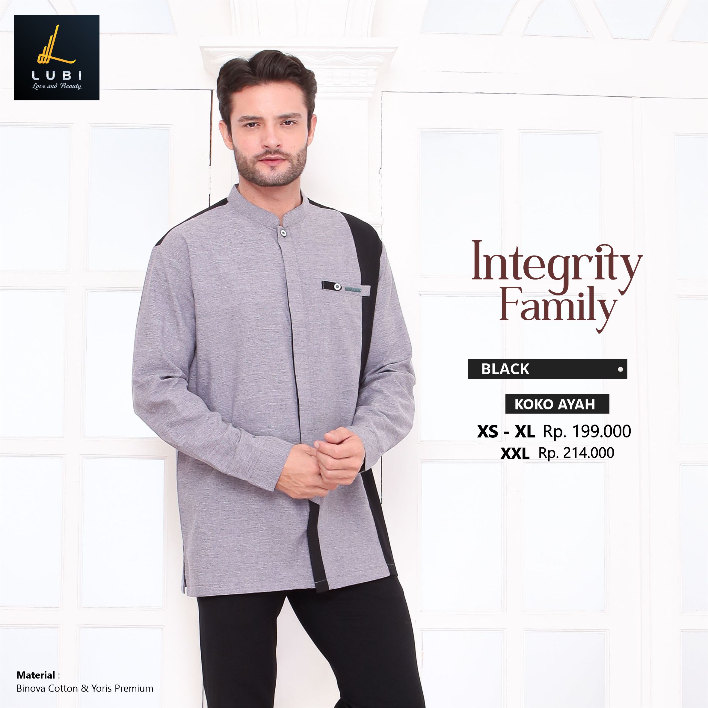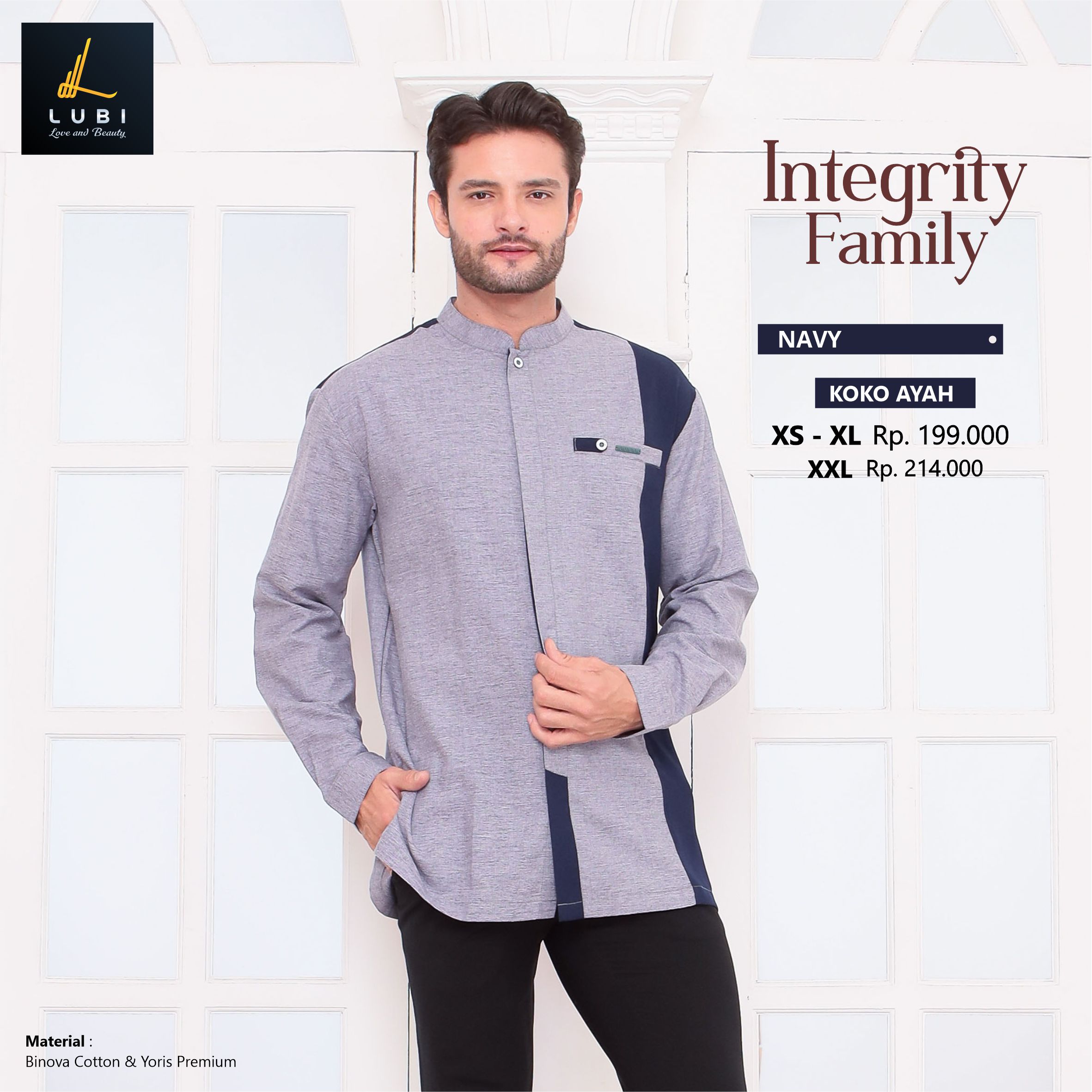 Dikombinasikan dengan outernya yaitu kain binova cotton adalah jenis kain andalan lubi yang bertekstur serat, halus, adem, menyerap keringat & tidak menerawang.