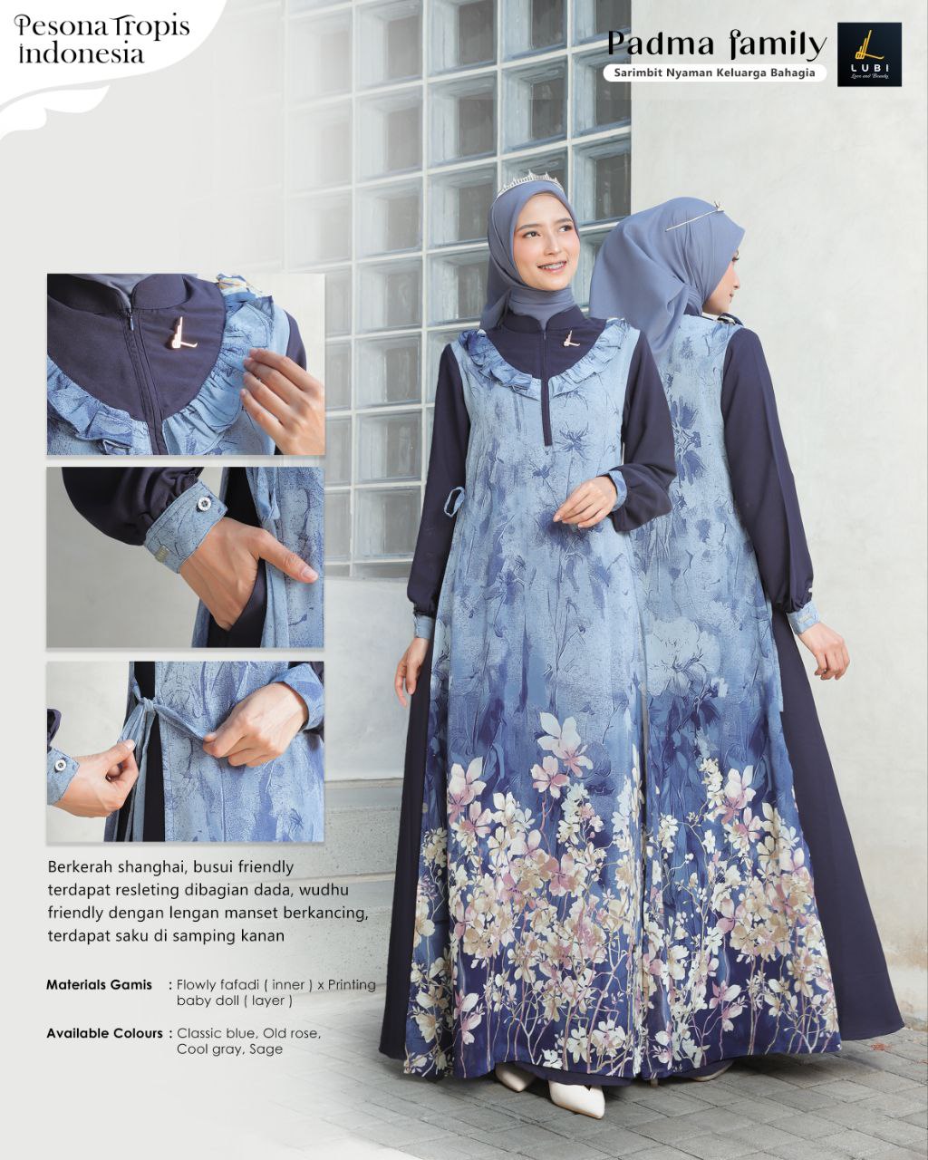 Gamis terbuat dari kain utama _Flowly fafadi_ adalah jenis kain yang memiliki karakteristik tekstur yang halus, flowly, tidak menerawang dan menyerap keringat. dipadukan dengan kain _Printing baby doll_ jenis kain bermotif yang memiliki karakteristik ringan, elastis, lembut & flowly. Sehingga perpaduan keduanya cantik, mewah & nyaman saat dikenakan.