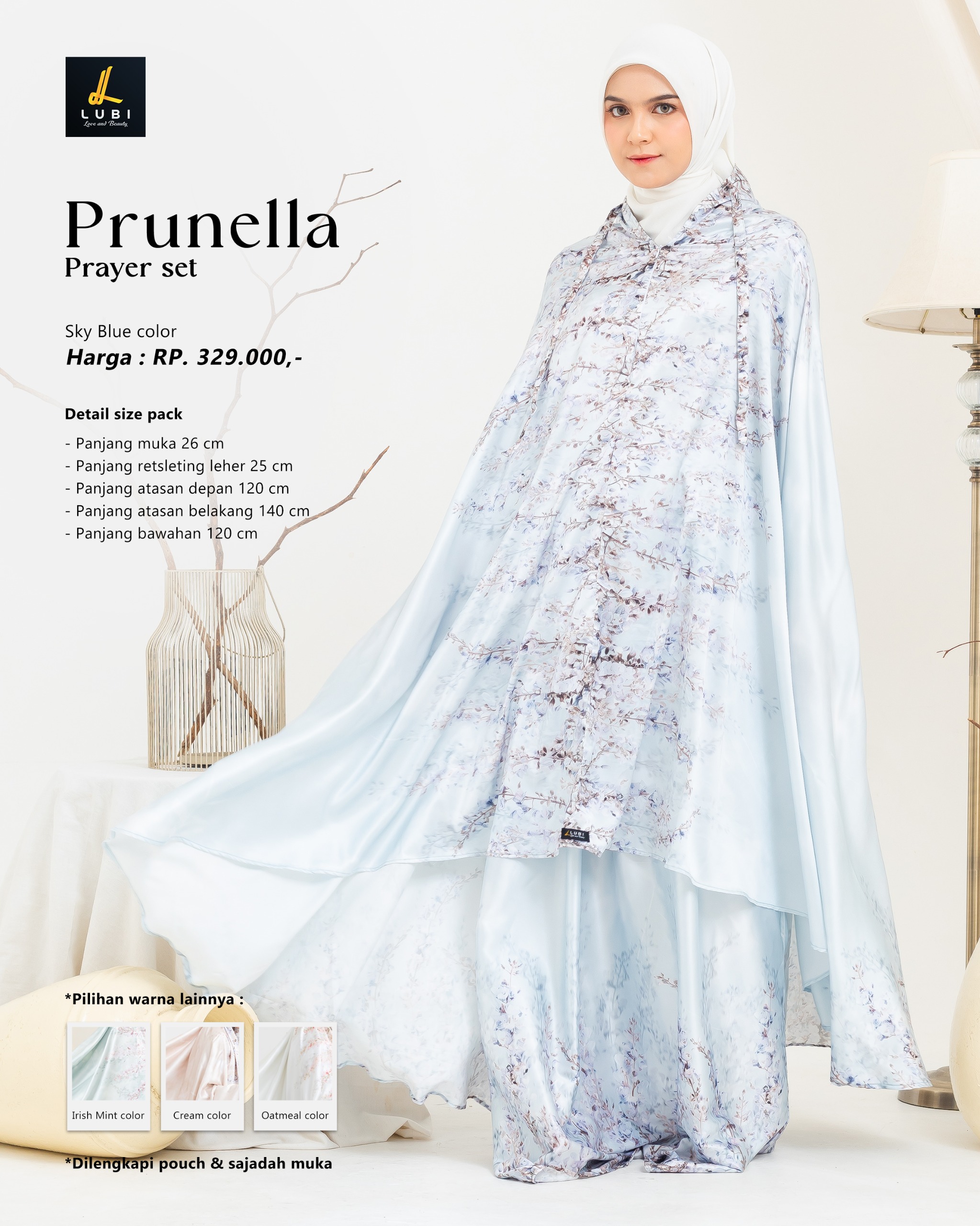 Keunggulan Prunella Prayer set ini terletak pada desainnya yang fleksibel dengan dua style pemakaian.